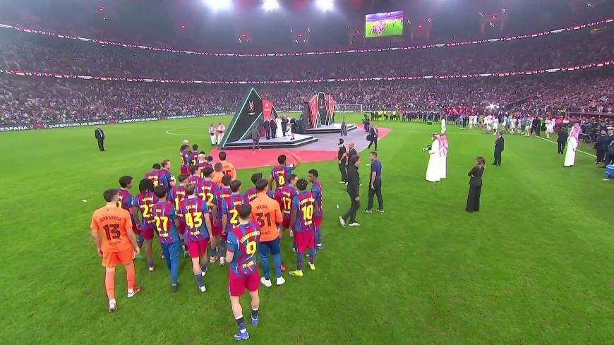 在北京时间1月12日结束的西班牙超级杯决赛中,皇马2-3不敌巴萨,无缘夺冠。而赛后,皇马球员在颁奖仪式上的行为也引发争议,因为他们似乎并没有按照常规流程为巴萨列队。众所周知,一般杯赛决赛中,将先给亚军颁奖,而巴萨在皇马球员领奖时,非常有风度列队鼓掌致敬,而当冠军巴萨球员走上领奖台时,皇马群星却消失了。对此,记者Alfredo Martínez非常不满吐槽道:...